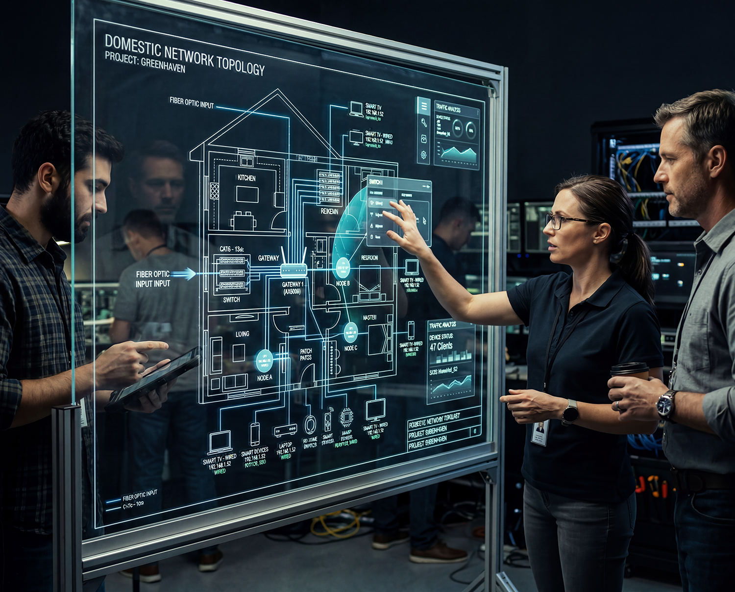 Ingeniería, validación y fabricación de componentes para red externa y red doméstica, con producción en volumen y control técnico en cada etapa.